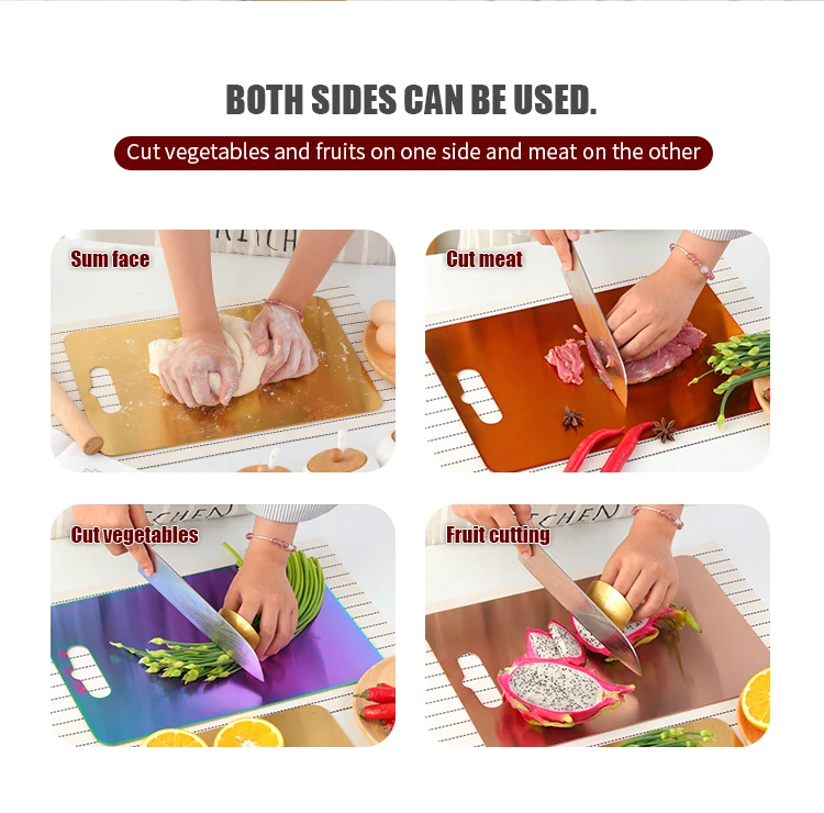 1Pc Chopping Blocks +Finger Protector Stainless Steel Cutting Boards For Kitchen Utensil Hangable Cheese Board Cutting Storage