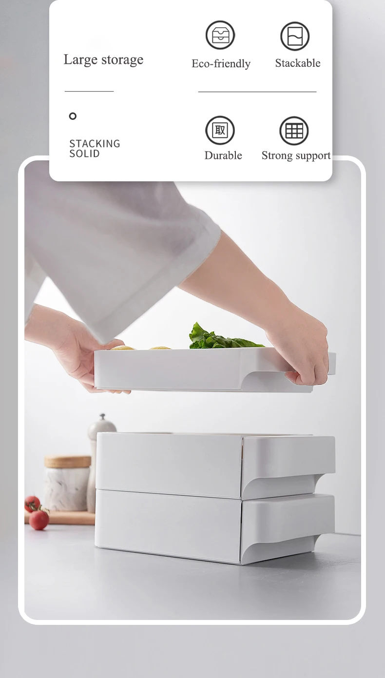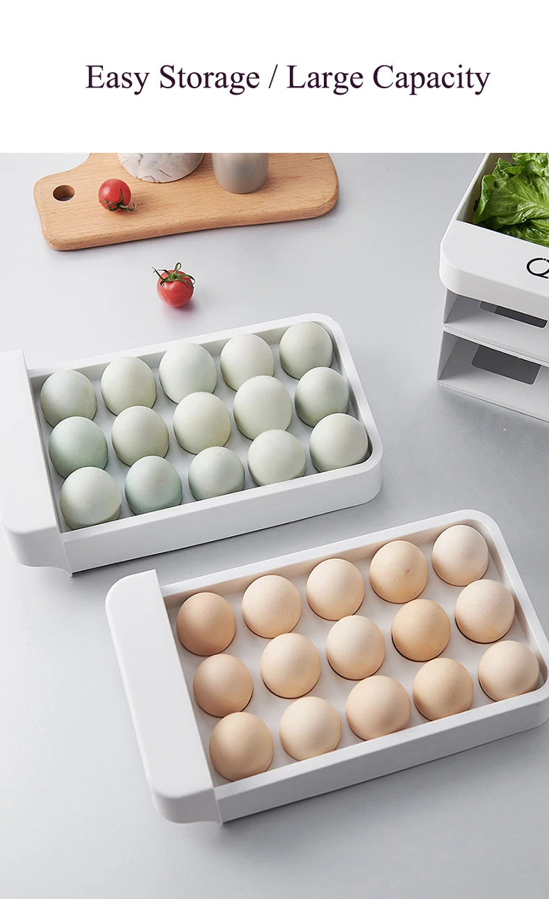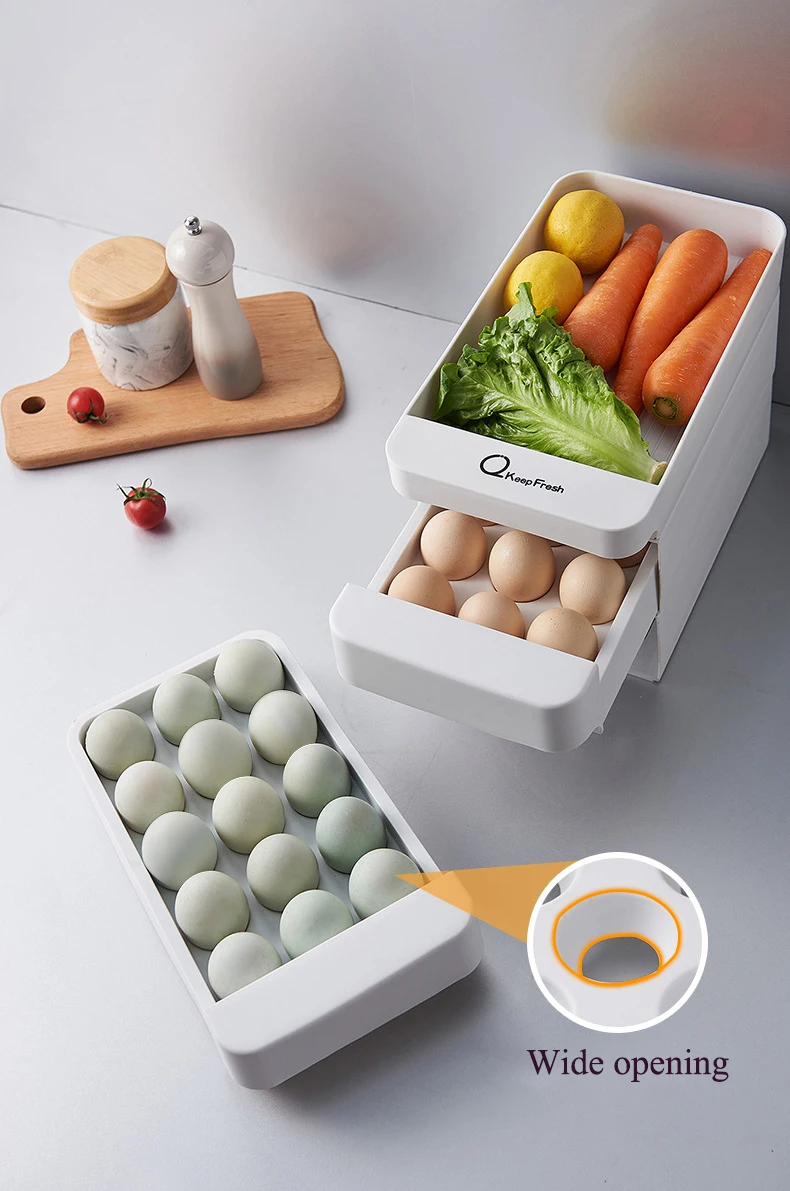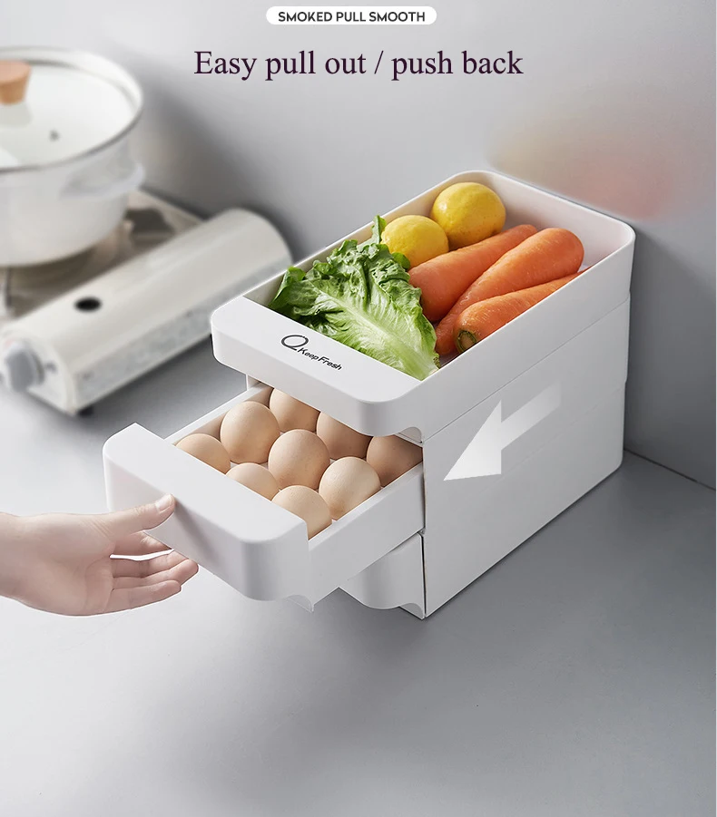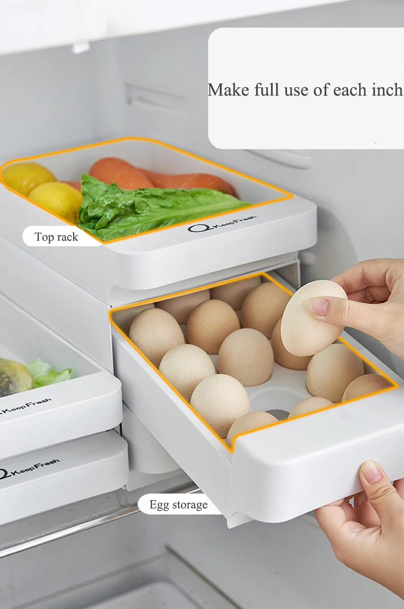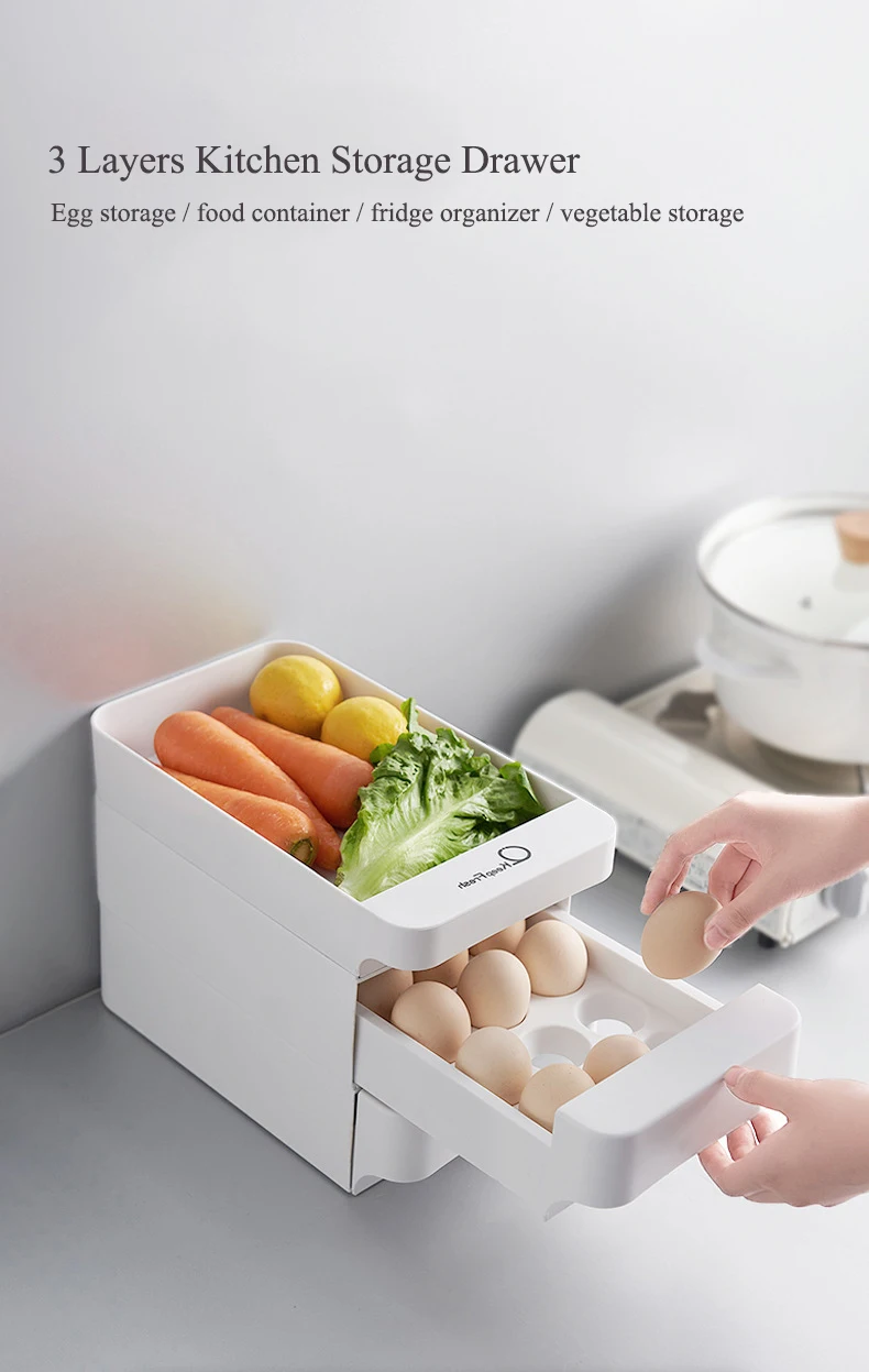 New 3 Layers Kitchen Stackable Egg Storage Drawer Fridge Food Organizer Box Pull Open Kitchen Accessories Plastic Storage Box