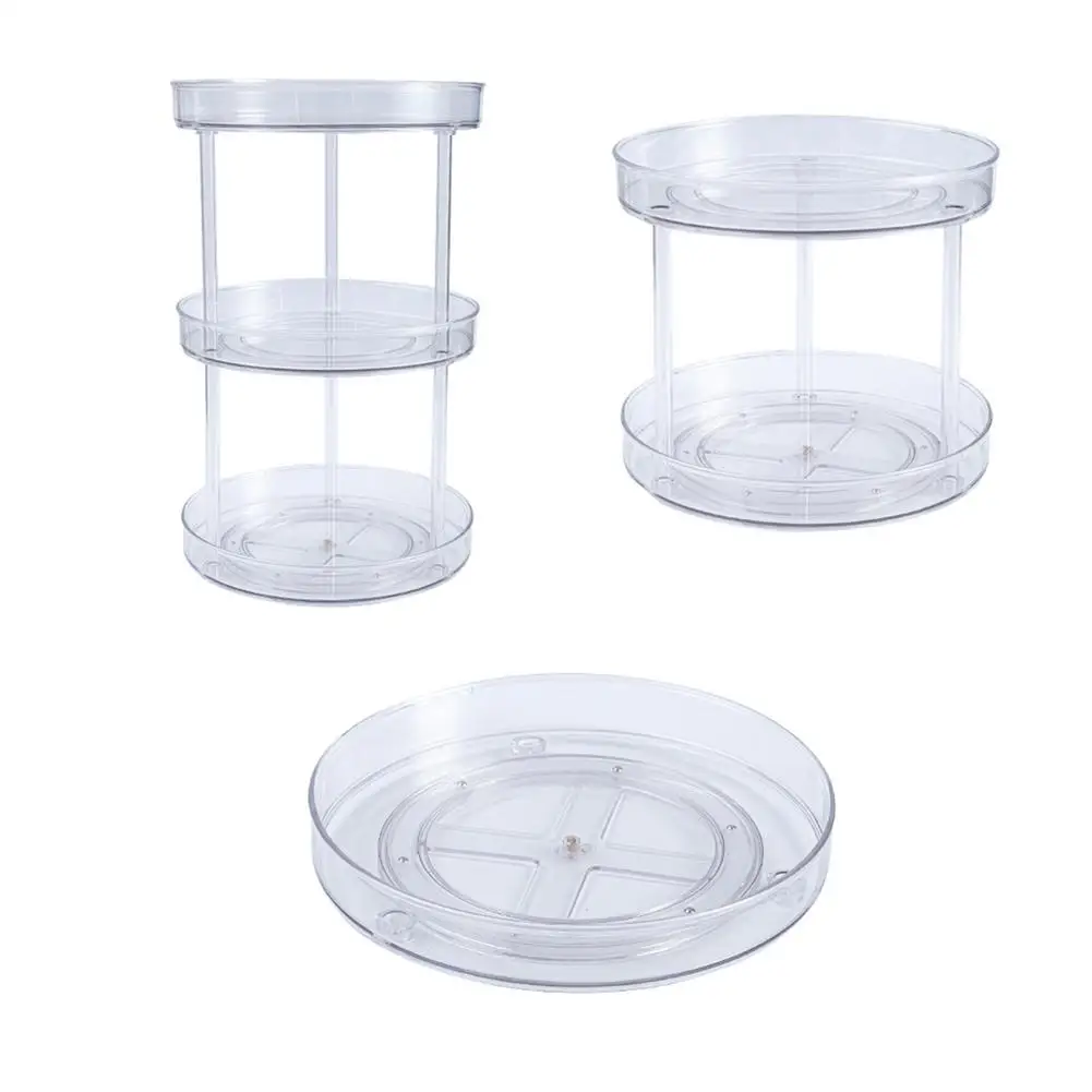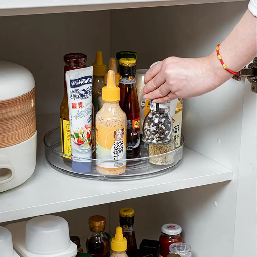 360 Rotation Cabinet Organizer Storage Spice Drink Cosmetic Storage Rack PET Transparent Turntable For Kitchen Bathroom Room