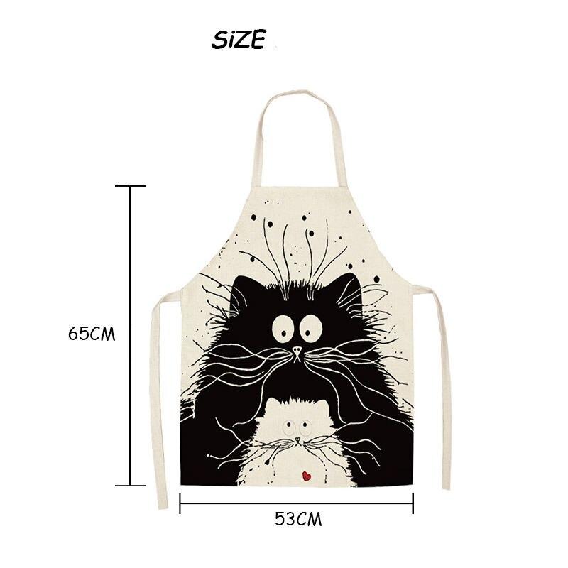 Black Cute Cat Printed Kitchen Cooking Baking Aprons 53*65cm Sleeveless Cotton Linen For Women Man Home Delantal Cocina 46307