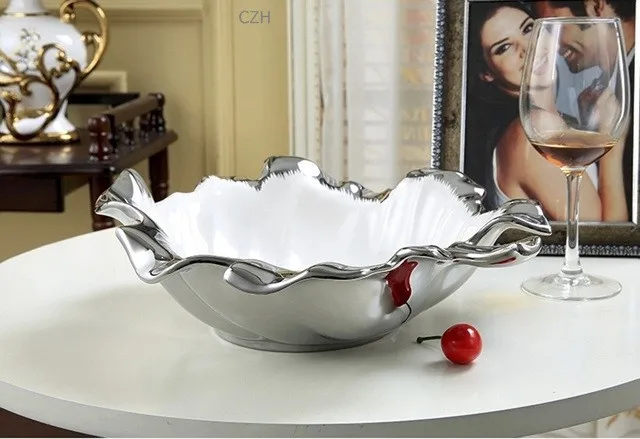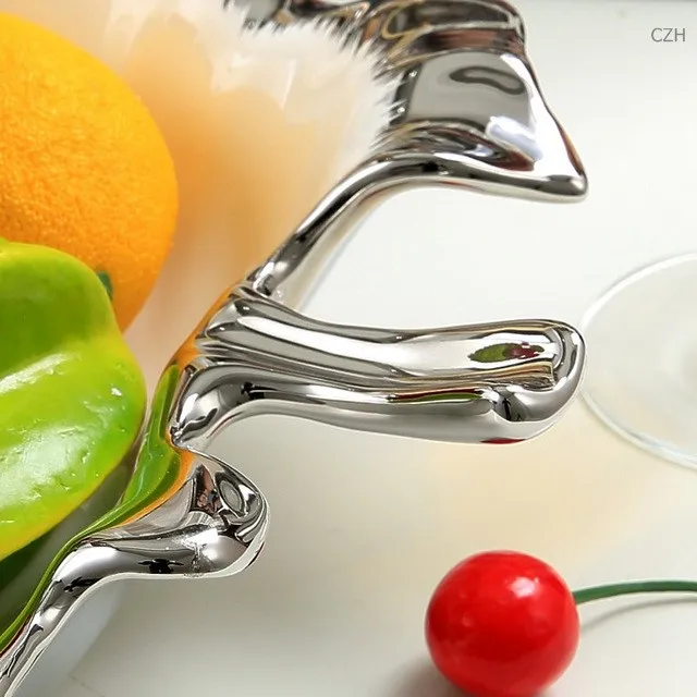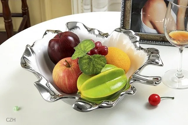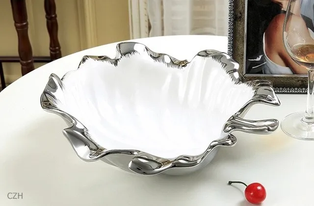 Electroplated Ceramics Leaf Shape Dinner Plate Ornamental Porcelain Serving Tray Tableware Receptacle Ornament Craft Accessories