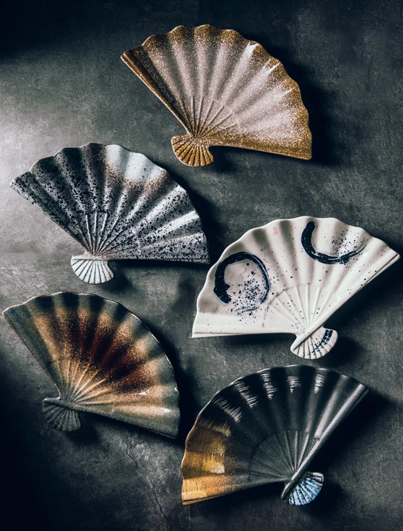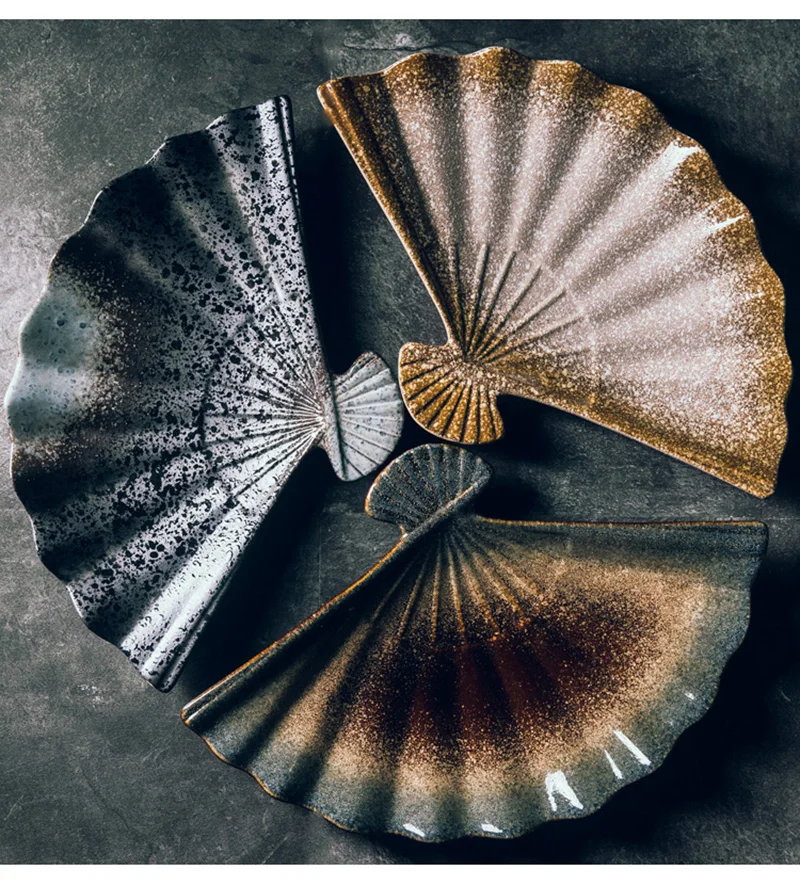 FANCITY Creative fan-shaped plate, set the table personality sushi plate, ceramic flat plate.