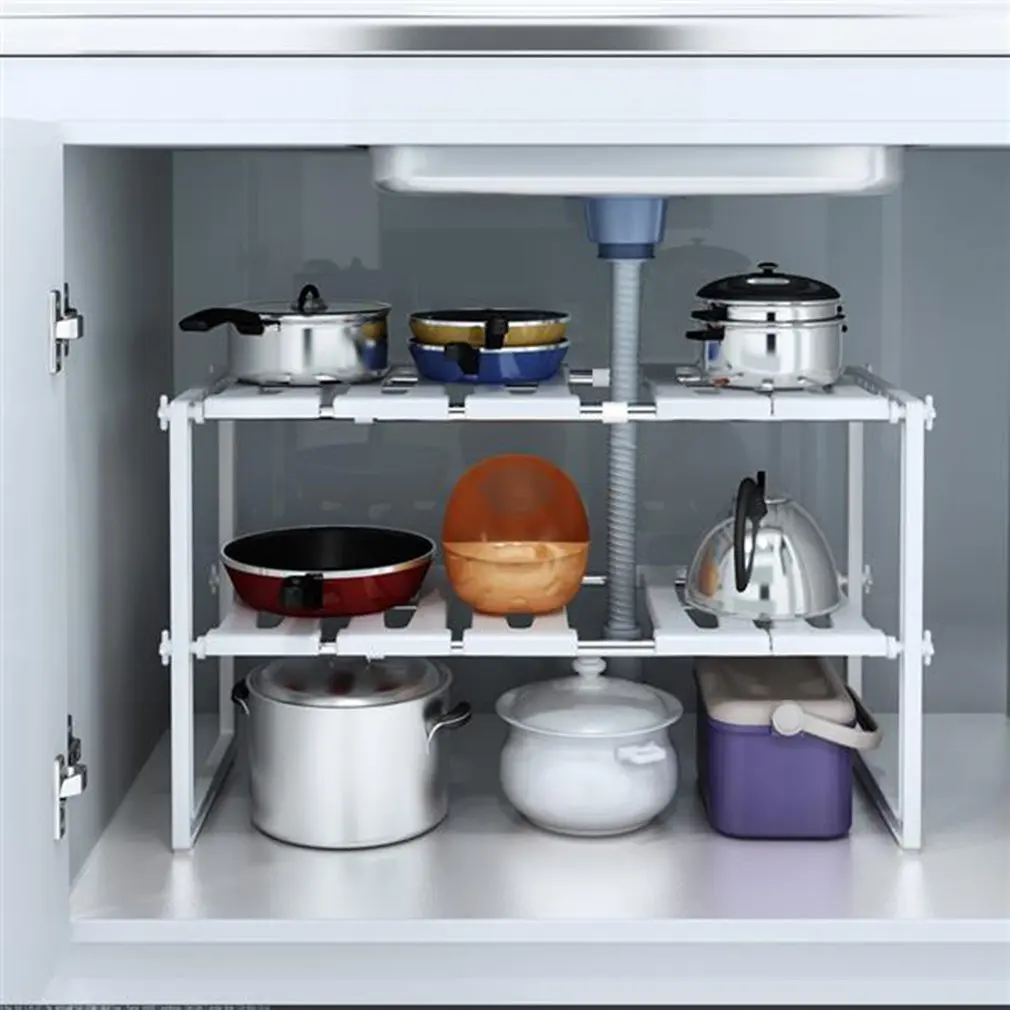 Double Layer Adjustable Multifunctional Shelf Floor Stand Storage Rack Under Sink Kitchen And Household Storage Rack