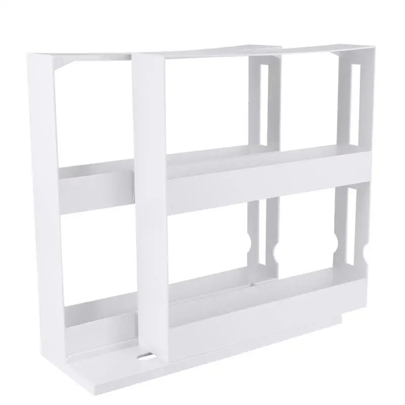 This storage rack is made of premium material, sturdy, durable, double layer, multifunctional and practical for long time use. It will not occupy too much room space, suitable for small apartment. Perfect for storage many kitchen supplies, such as seasoning, dishes, plates, bowls, etc. This product can be given as a great gift for your friends and families. They will be very happy.