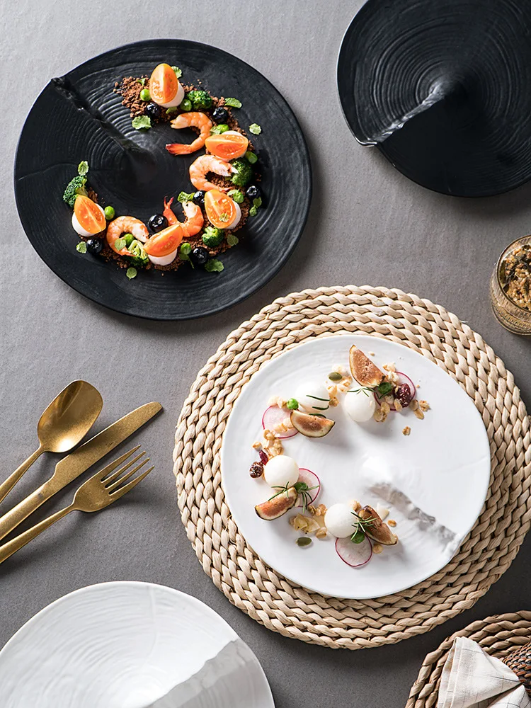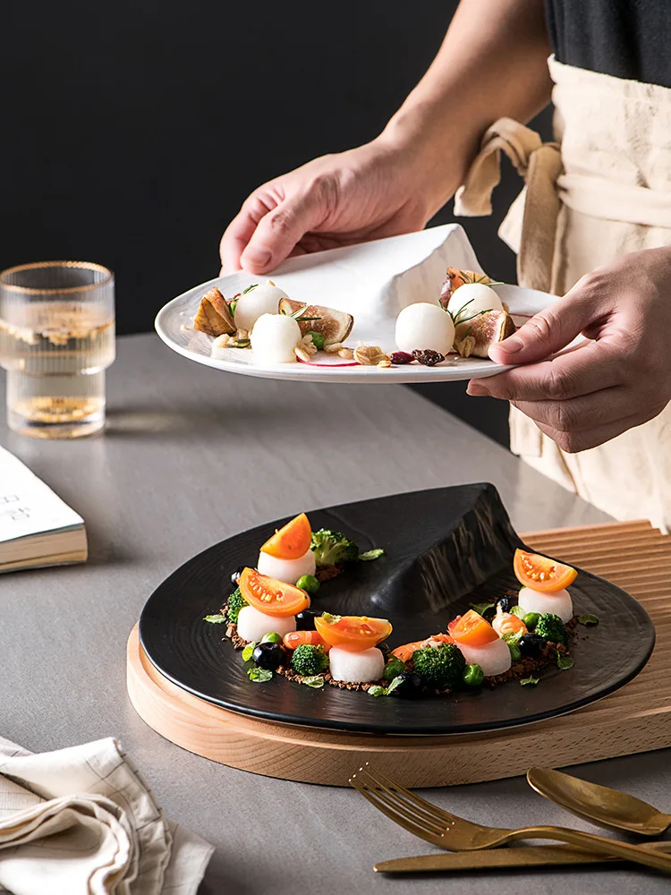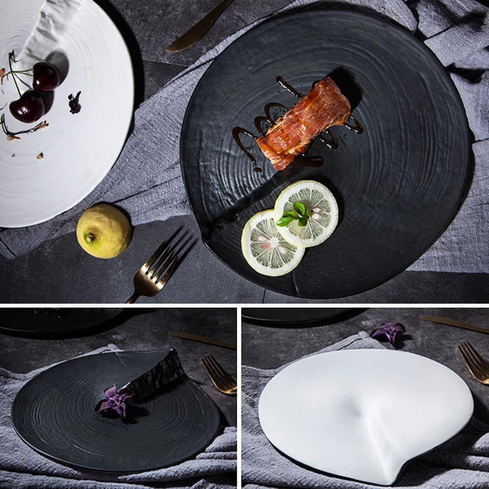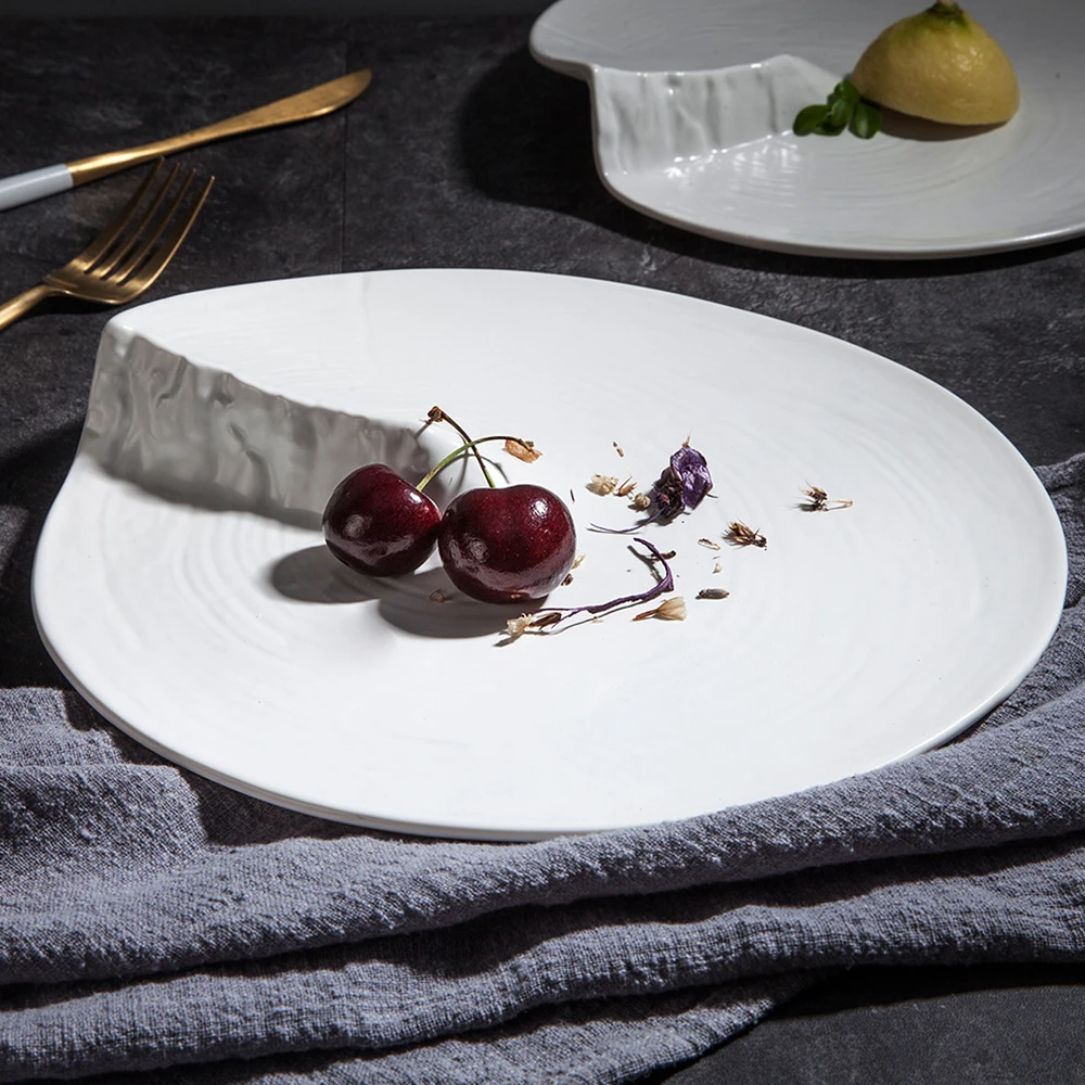 Creative Irregular Shaped Ceramic Plate Dinner Steak Plate Front Plate Kitchen Breakfast Spaghetti Plate Tableware 8.25/9.5Inch