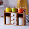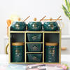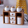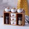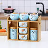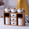 Glass Spice Jar Set Storage Tank Kitchen Accessories Ceramic Seasoning Jar Set Ceramics Tea Box Wood Rack Holder Salt Bot