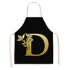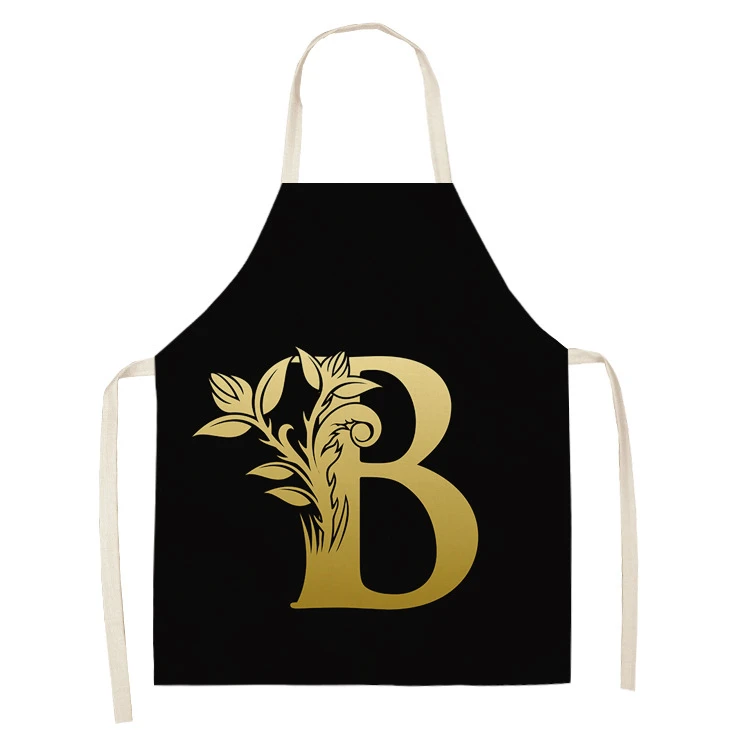 Gold Letter Alphabet Pattern Kitchen Apron For Woman Sleeveless Cotton Linen Aprons Cooking Home Cleaning Tools 53*65cm WQ0051