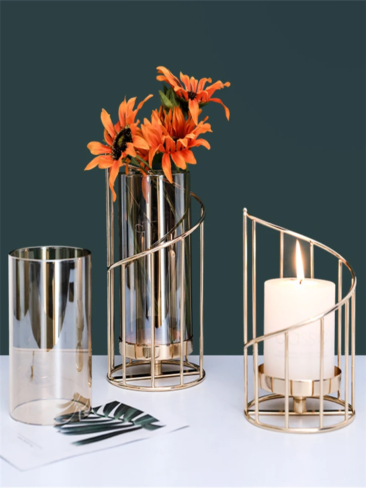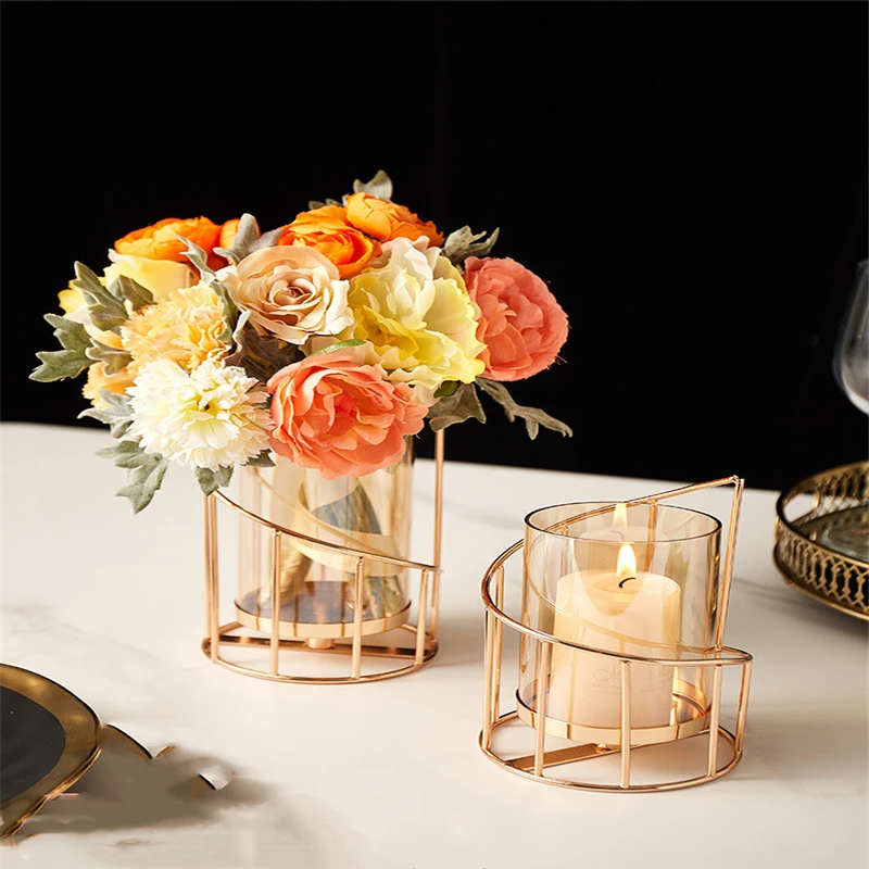 Golden Iron Candle Holder European geometric Candlestick Romantic Crystal Candle Cup Home Decoration Table Decoration