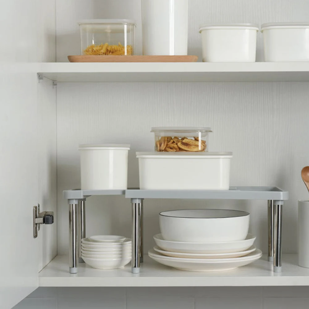 Kitchen Cabinet Counter Shelf Organizer Racks Expandable Stackable Fit For Kitchen Bathroom Under Sink Pantry Desktop Storage