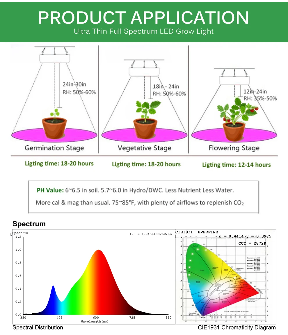 Suitable for all indoor growing environment: grow tent, grow room, best for growth and bloom stage. Popular in hydroponics, greenhouse, indoor gardening, pipeline cultivation, potted plants and so on.