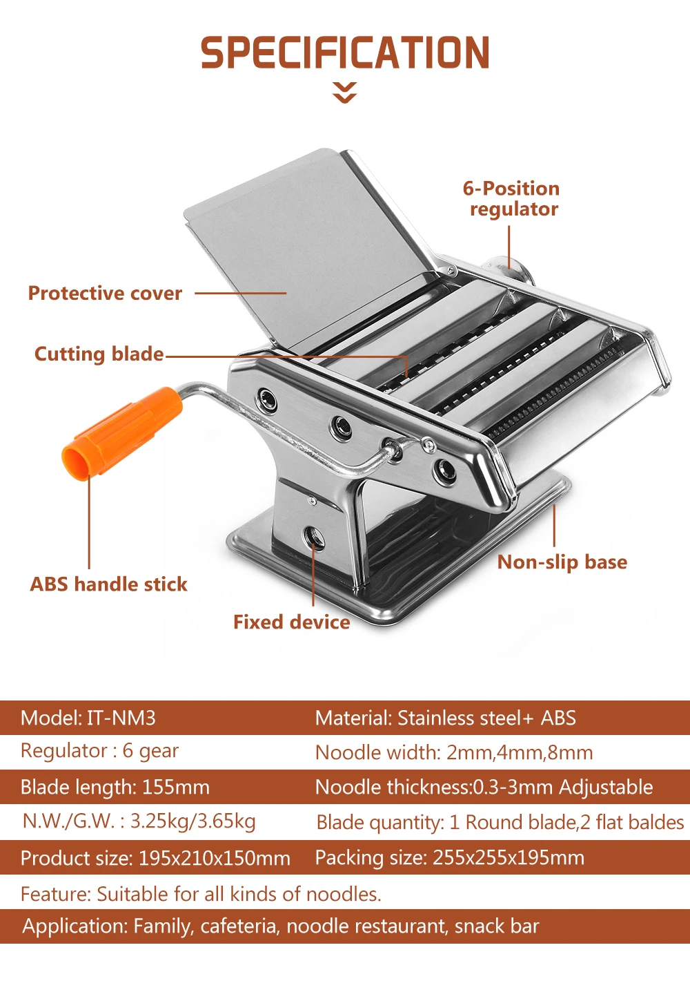 1. Can cut different noodles Width: 2mm, 4mm, 8mm.