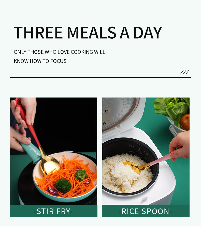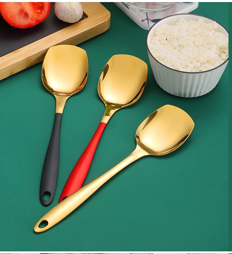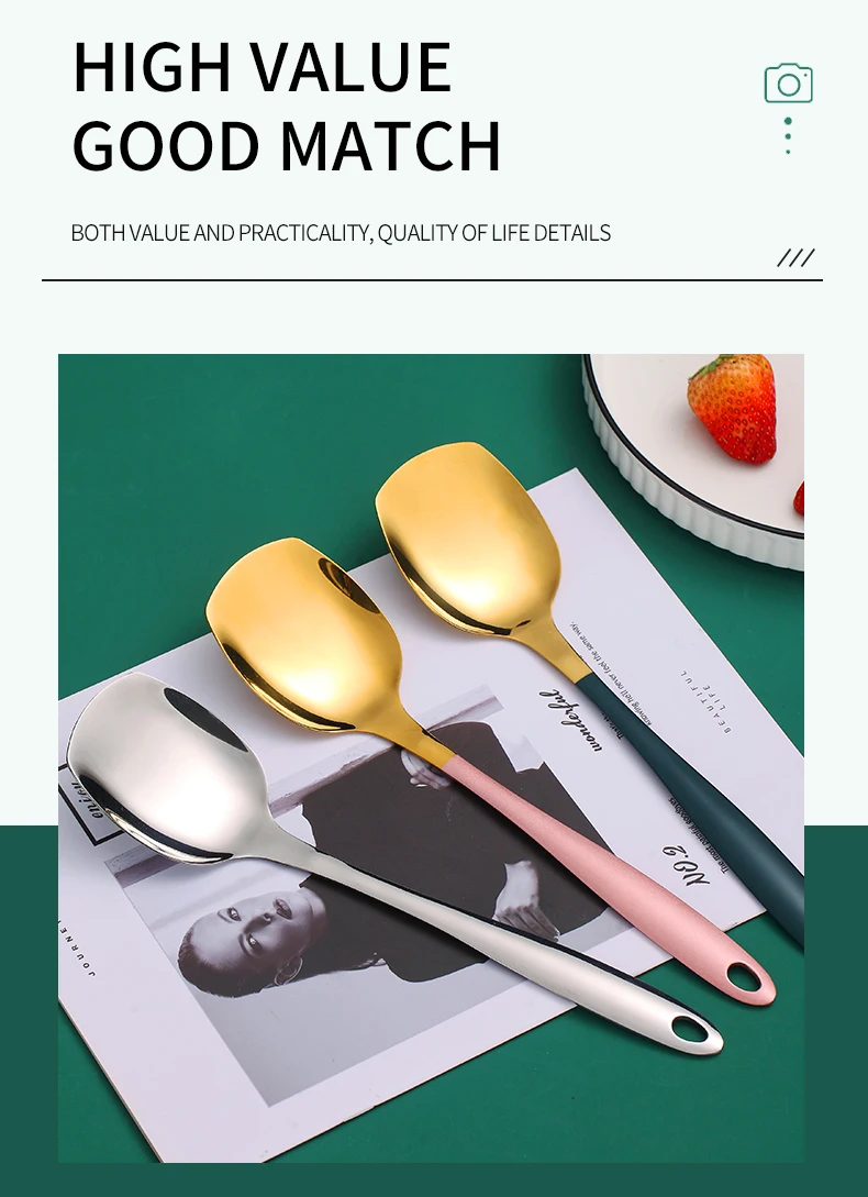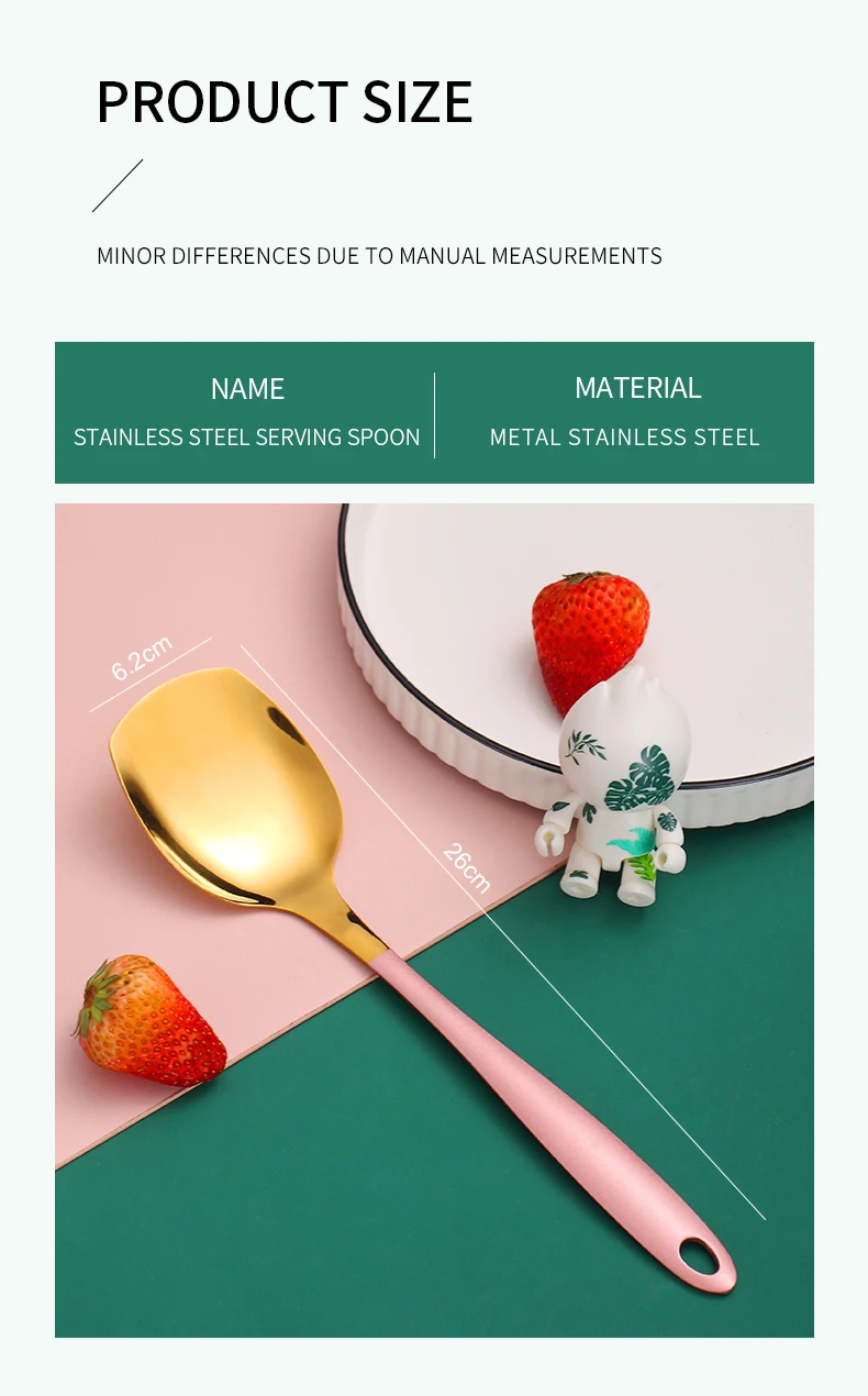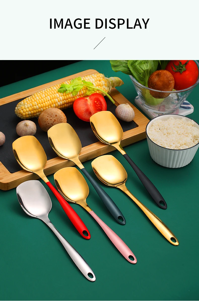 WORTHBUY Multifunctional Colorful Kitchen Utensils Stainless Steel Turner With Long Handle Kitchen Cooking Tool Rice Spoon Scoop