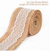 2Meter 5cm Natural Jute Burlap Lace Ribbon With White Lace Trim Edge Rustic Wedding Decoration For Wedding DIY Bow Craft Ribbons