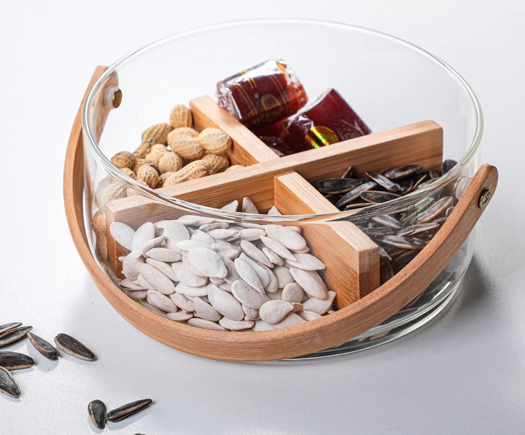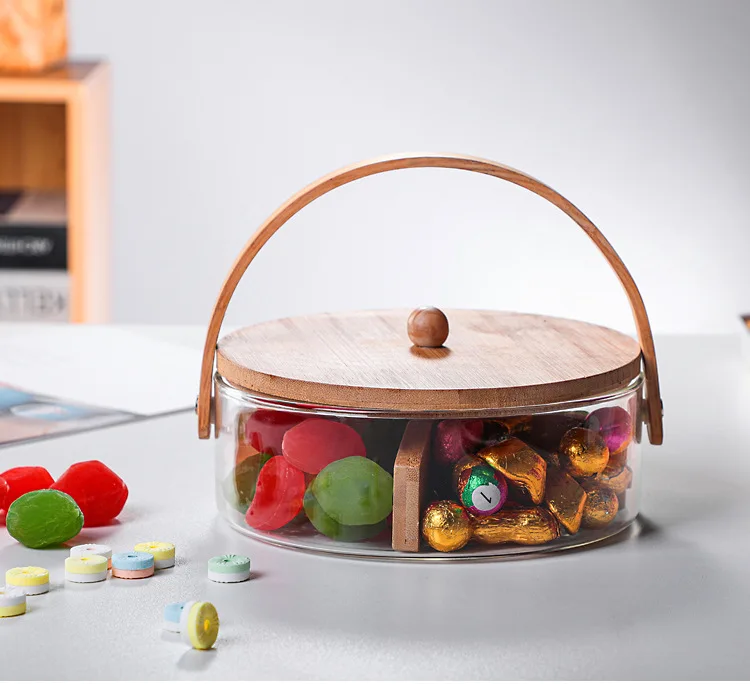 New Nordic 1.3L Candy Fruit Biscuit Storage Basket Wood Handle Glass Nuts Snack Display Container 1PCS Food  Jar With Handle