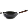 Very large and heavy (but not too) wok. Steep inner surface, exactly as in the photo. Slightly flat bottom, appropriate for gas stove at maximum fire. A beautiful ergonomic handle that is removed and screwed without problems. The material of the handle is a good quality wood. A real wok, not just a flat frying pan. Delivery 3 weeks to the city of Samara.