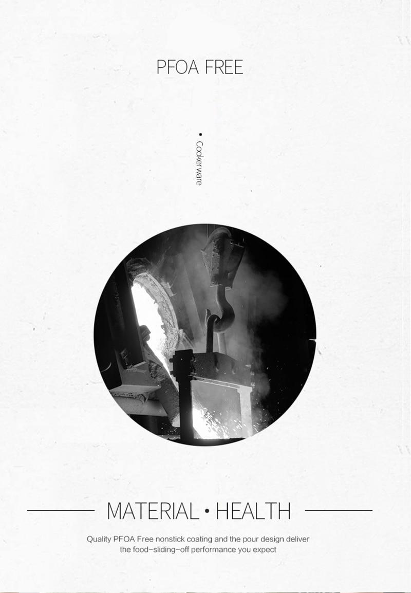 【Whitford Non-Stick Coating】Non-stick grill pan use granite Whitford non-stick coating, 100% free of APEO and PFOA, a special die-casting process, sturdy aluminium alloy pan has excellent thermal conductivity. The anti-scratch layer of the skillet has superior wear resistance performance, which makes this non-stick induction frying pan more durable.