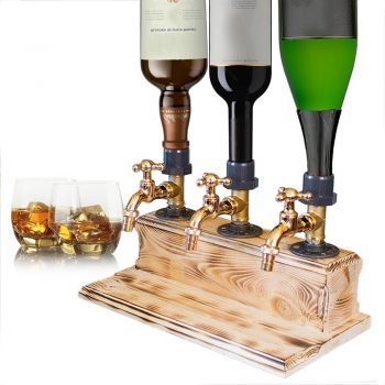 3 Bottle Liquor Alcohol Whiskey Wood Dispenser