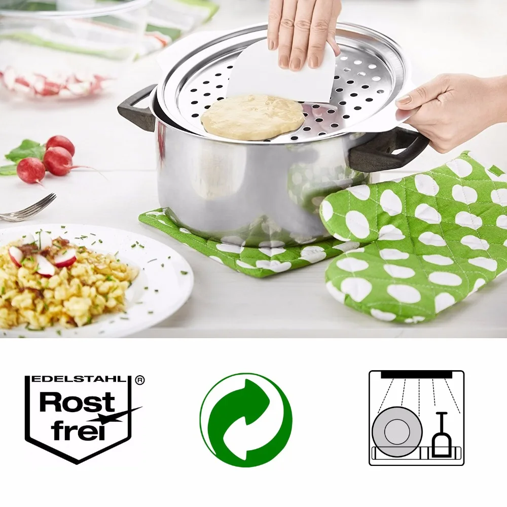 Stainless Steel Spaetzle Maker Lid with Scraper Germany Eggs Noodle Dumpling Maker Home Kitchen Pasta Cooking Tools Accessoires