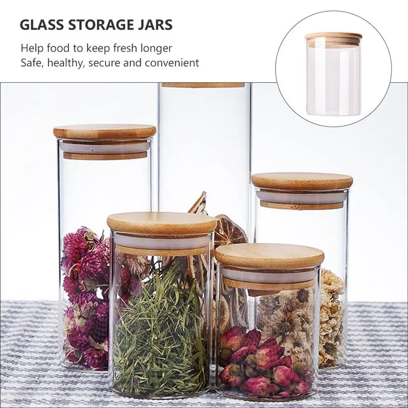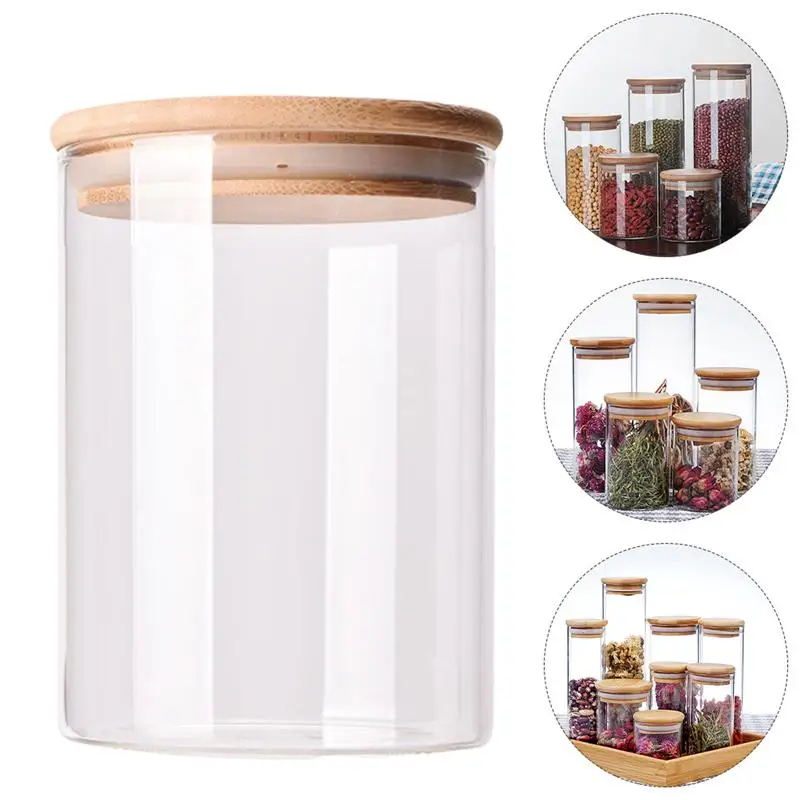 Wood Lid Glass Airtight Canister Kitchen Storage Bottles Jars Food Container Grains Tea Coffee Beans Grains Candy Jar Containers